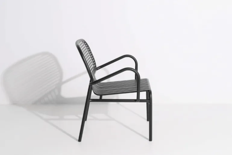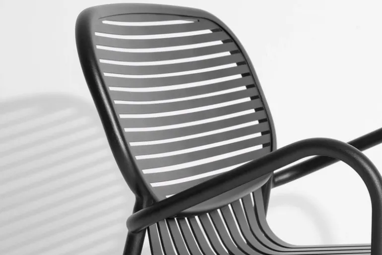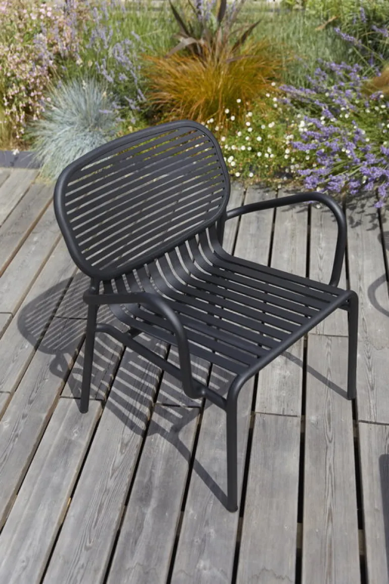 The Week-end lounge chair is part of Petite Friture’s collection of aluminum outdoor furniture. The Week-end lounge chair is characterized by oval shapes and both horizontal and vertical slats on the backrest. All the chairs of the Week-end range are stackable.