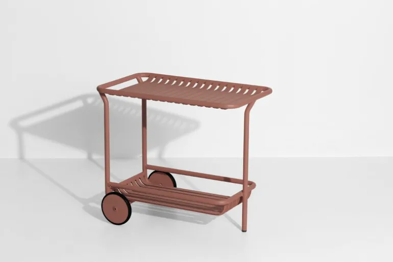 The Week-end trolley is part of Petite Friture’s collection of aluminum outdoor furniture. The clean-lined outdoor serving trolley invites sassy and sophisticated cocktail moments to your garden, terrace or balcony. The multi-purpose trolley also works perfectly as a side or coffee table.