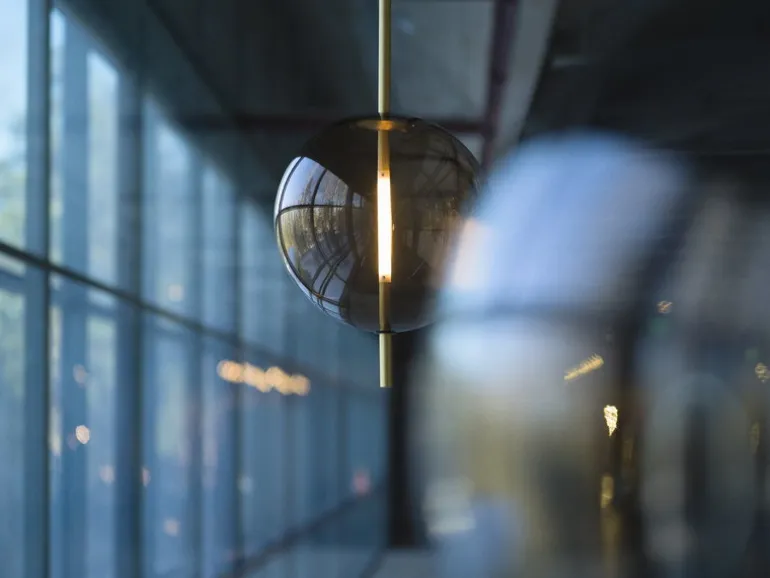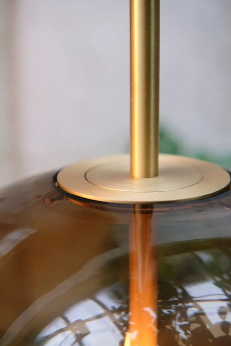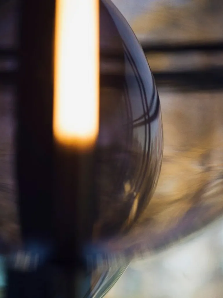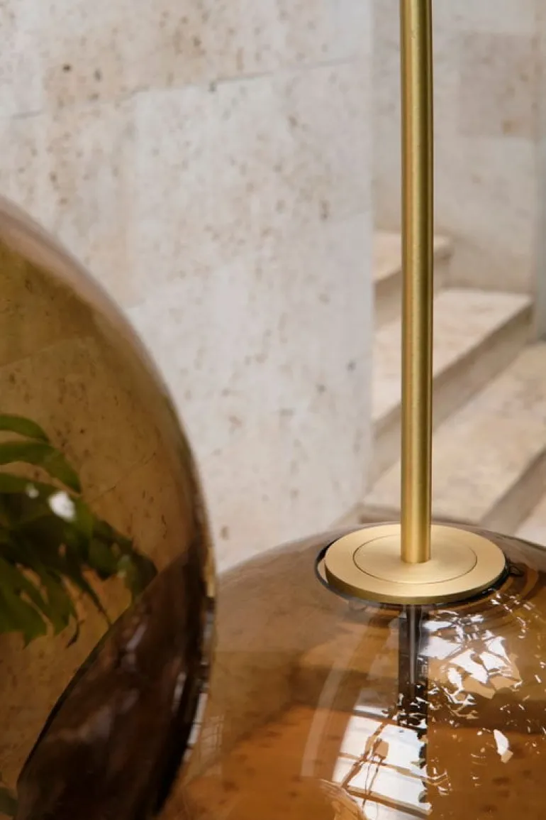 Kandinsky 30, designed by Broberg & Ridderstråle for Pholc, is an eye-catching pendant made of brass and smokey brown glass. Inspired by abstract paintings by Wassily Kandinsky, the luminaire consists of a glass sphere and a brass spear connecting mid-air to create a truly unique composition of materials and lighting. Whether on its own or in a larger group, Kandinsky 30 brings an air of sophistication to any space.