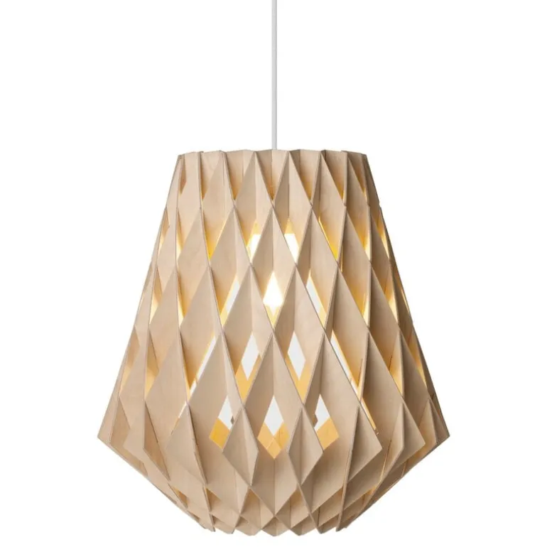 Pilke 36 is part of the simple yet ornamental Pilke Signature Collection designed by Tuukka Halonen. Crafted from birch plywood, the Pilke luminaires are an enchanting combination of technology and tradition: Halonen sought influences for the design from traditional Finnish wood crafts but utilized today’s manufacturing methods and materials. As a contemporary interpretation of shingle work, the lamps are characterized by a crystal-like pattern that filters the light pleasantly and casts beautiful shadows on the walls and ceiling. All Pilke lamps are designed and handcrafted in Finland.