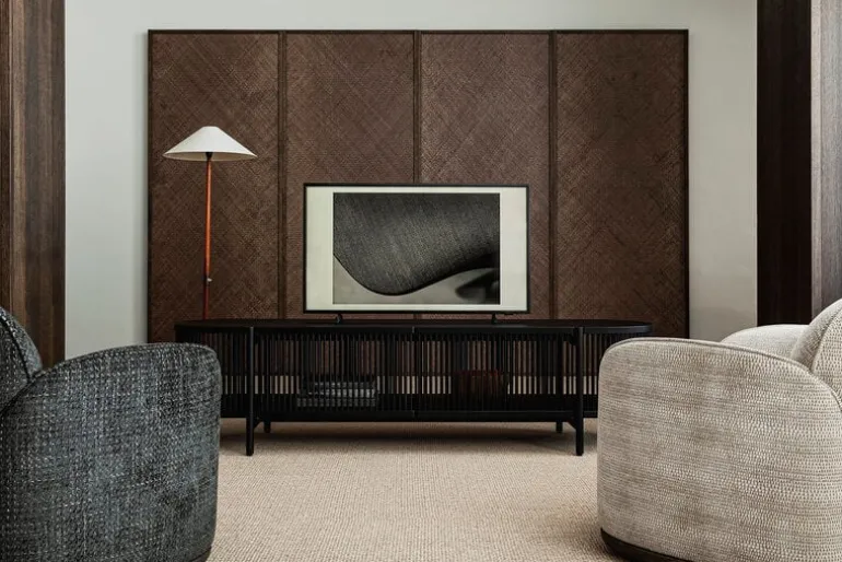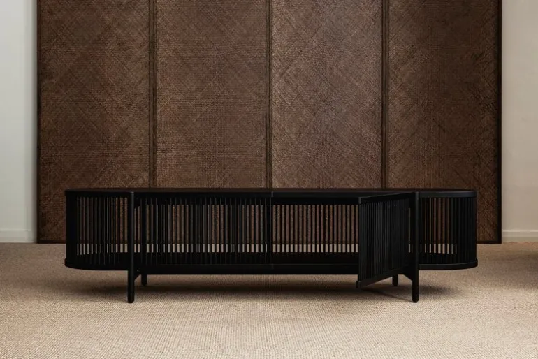 Bastone sideboard is a timeless and sculptural art piece designed by master cabinetmaker Antrei Hartikainen for the Finnish Poiat. The sides of the solid wood sideboard are made of wooden slats that filter light inside and cast beautiful shadows around it. The thick shelves and top provide a stable structure and contrast with the transparent sides. Bastone creates a captivating setting for your favorite items in any room. Fill it with books and decorative objects in the living room, use it for storing tableware in the kitchen, or, thanks to the open structure, you can also place a houseplant or decorative lamp inside it.