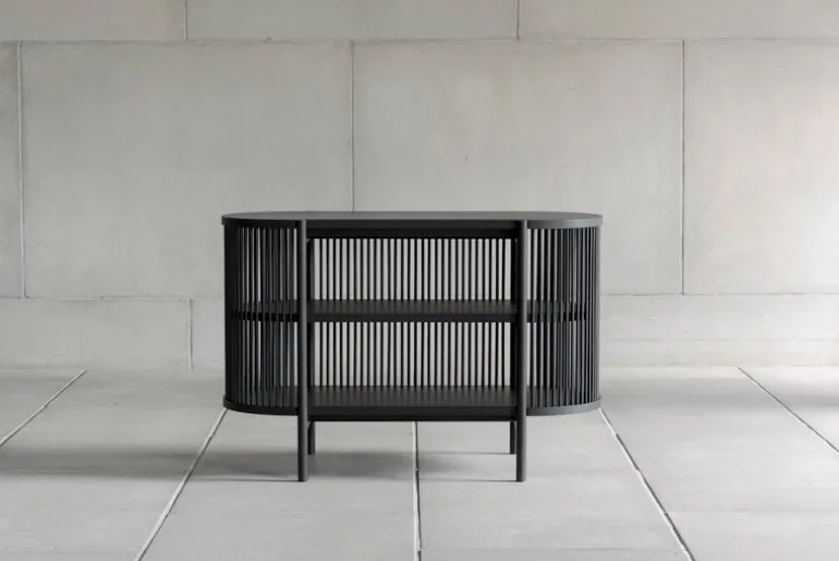 Petit Bastone is a smaller version of the timeless and sculptural sideboard designed by master cabinetmaker Antrei Hartikainen. Manufactured by the Finnish brand Poiat, the solid wood sideboard features sides made of wooden slats that filter light inside and cast beautiful shadows around it. The thick shelves and top provide a stable structure and contrast with the semi-transparent sides.