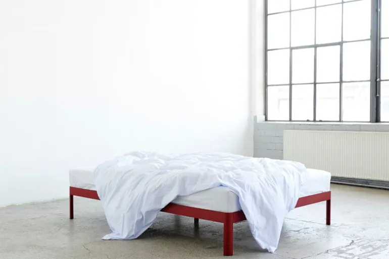 The sleek and minimalistic design and several color options make the ReFramed bed ideal for any bedroom decor, and the sturdy metal construction can last a whole lifetime. The bed frame comes with wooden slats that provide maximum support for your mattress, whether you prefer a spring, foam or memory foam mattress. The ReFramed bed frame can be customized with add-on side tables, which are sold separately.