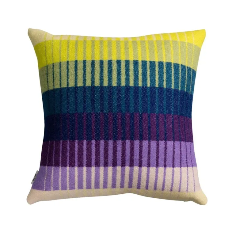 Røros Tweed’s Åsmund Gradient cushion, designed by Kristine Five Melvær, merges sharp geometric shapes with glowing, rich hues to great visual effect. The Åsmund Gradient range has been influenced by textile art and woolen tapestries, which have received a contemporary spin in the hands of Melvær. Switching up esthetics is easy, as the Åsmund Gradient cushion features slightly varying designs on its front and back.