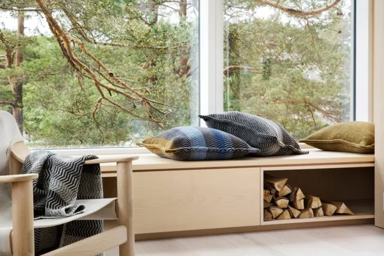 Røros Tweed’s Fri cushion is just the ticket for all those seeking cozy, top-quality Scandinavian textiles. With the Fri series, designers Torbjørn Anderssen and Espen Voll set out to reinterpret the look of traditional table cloths, referred to as løpere in Norwegian. The design duo re-envisioned the repetitive color pattern typical of the original design and established a zigzag motif. With its soft visual effect, Røros Tweed’s Fri cushion draws you in to feel its pleasant surface.