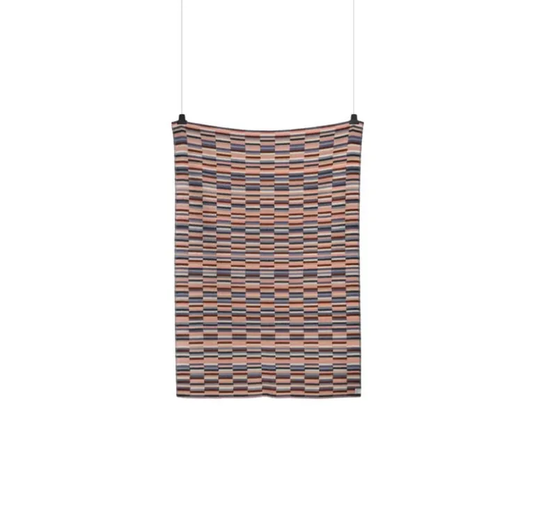 Røros Tweed’s Ida throw, designed by Anderssen & Voll, features a colorful, checkered pattern inspired by patchwork and handmade tapestries. The designers, Torbjørn Anderssen and Espen Voll, created the pattern by making a full-scale model with pieces of colored paper – so instead of digital design or drawing, it was designed literally by hand. To honor the design process, traces of the human hand, like small imperfections and irregularities, were preserved in the final product.