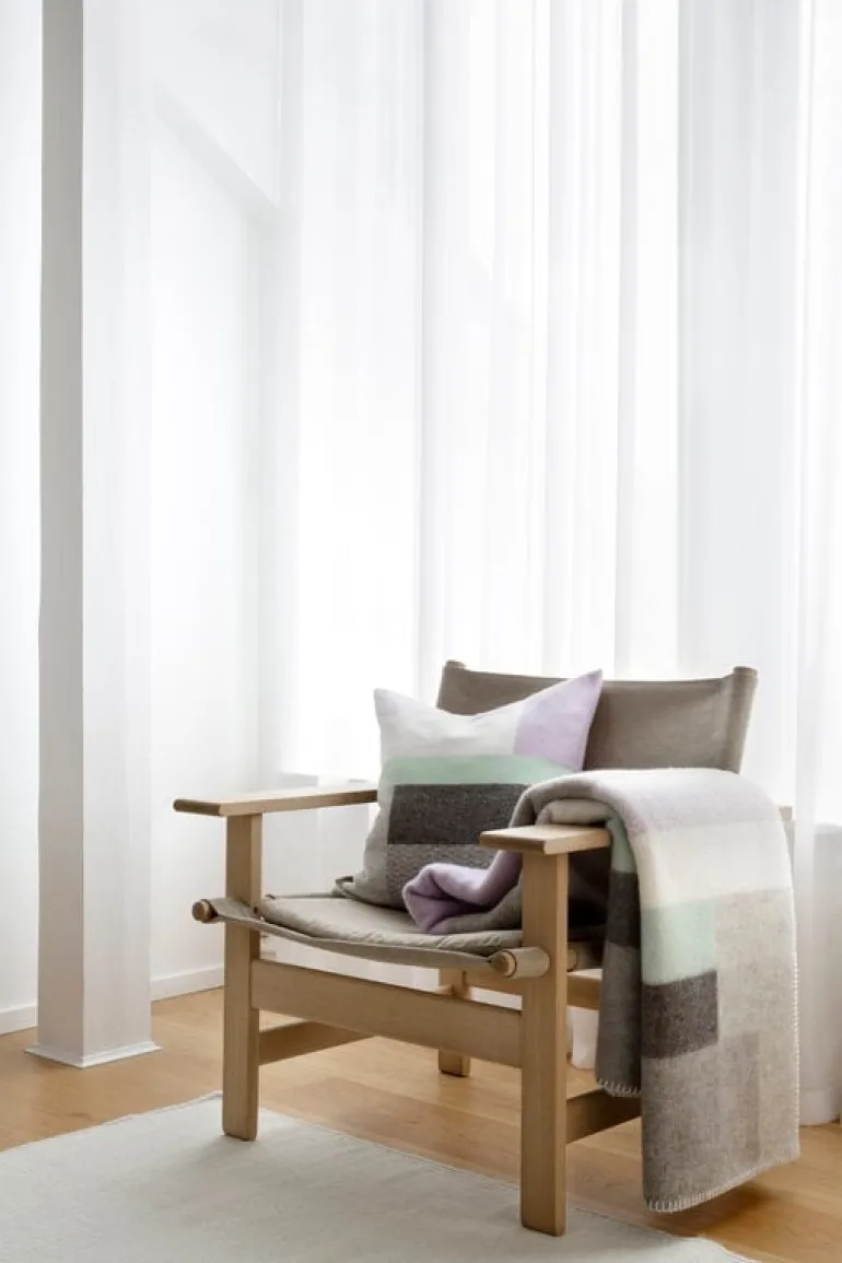 Røros Tweed’s Mikkel throw brings a touch of joy to the interior with its playful and contemporary look. Designed by Kristine Five Melvær, the Mikkel series features geometric patterns and fascinating colors inspired by the Bauhaus movement and the Norwegian weaving traditions. Combine the luxuriously soft Mikkel throw with the cushions from the same series.