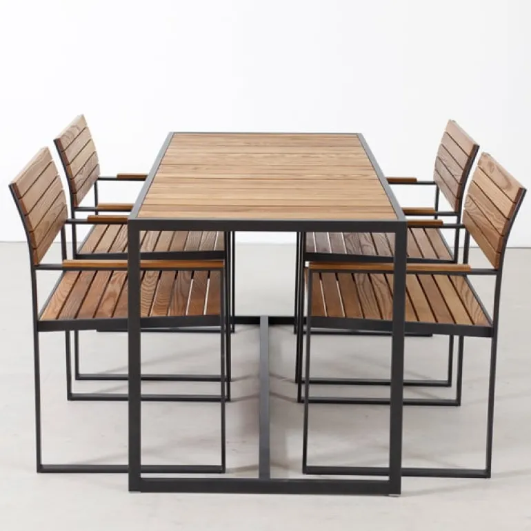 The simple yet elegant Garden Bistro table is made out of stainless steel and teak. Combine it with a group of Röshults Garden Bistro chairs and create a gorgeous dining space to your terrace.