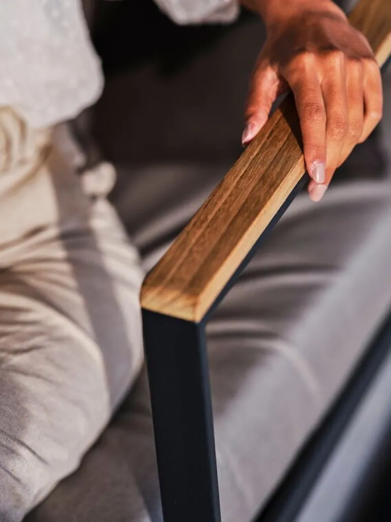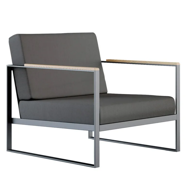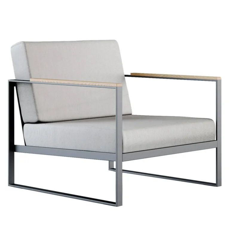 Röshults’ Garden Easy lounge chair is designed for modern outdoor lounging. The lounge chair has been coated with Sunbrella fabric to withstand moisture and some rain. The steel parts have been powder-coated and rust-protected, and the armrests have beautiful teak details.