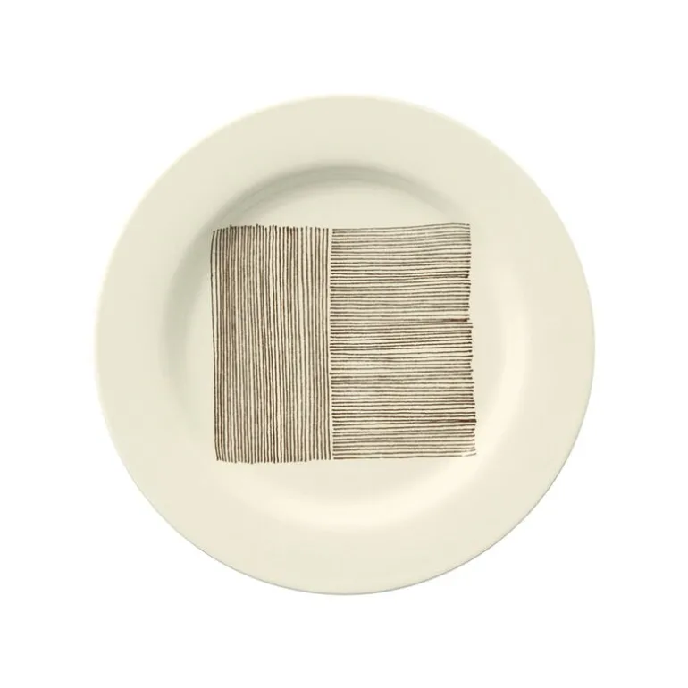 Sabato’s porcelain plate, crafted from Japanese Hasami porcelain, is a 8.27 in (21 cm) wide plate suitable as a starter plate, small dinner plate as well as for serving purposes. Adorned with an abstract pattern, this graceful ceramic plate features a glossy glaze finish and is safe for both the dishwasher and microwave.