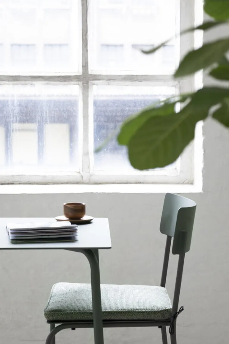 The August chair by Serax is made of powder-coated aluminum, and it is suitable for both indoor and outdoor use. The compact, relatively high chair is just as at home out in the garden or on the patio as it is next to a dining table or desk indoors.