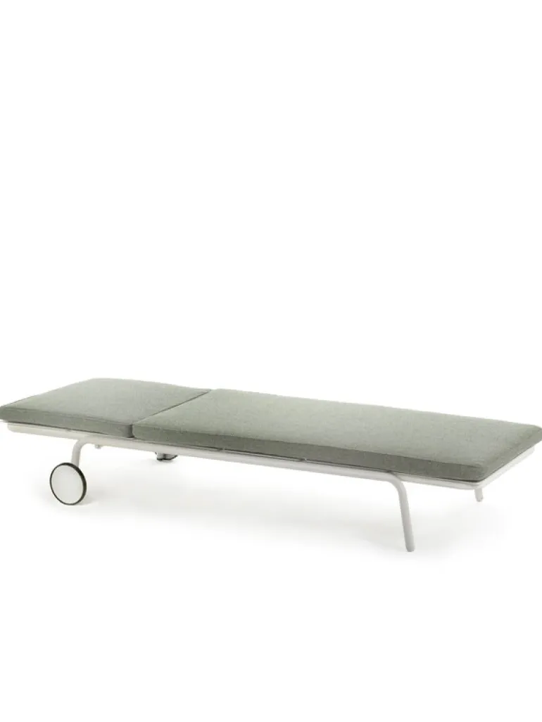 This cushion is designed for the Serax August sun lounger. Perfect for outdoor use, the cushion is filled with Quickdry foam and upholstered with Dacron fabric, commonly used as a sail material. The cushion has leather straps that attach to the sunbed so that it stays firmly in place and you can focus on enjoying the sun.