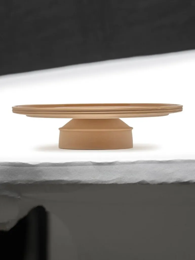 Serax’s Dune cake stand offers an elegant backdrop for birthday cakes as well as everyday sweet delights, and the footed porcelain cake stand can also be used for serving savory treats. Instead of patterns, the ceramic Dune tableware is adorned with shapes and textures: a glazed interior contrasts beautifully with the unglazed exterior, and delicate rims complete the look.