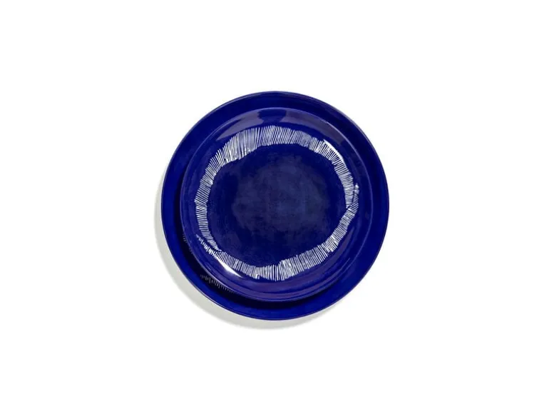 Serax’s Feast plate is decorated with a circular pattern made of blue lines of varying lengths and thicknesses. The playful plate is ideal for the dinner table as well as a serving dish for sweets, fruit, desserts and other snacks. The package contains two plates.