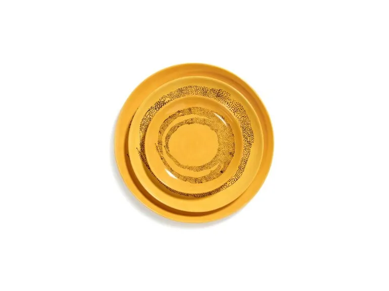 Serax’s Feast plate is decorated with a circular pattern made of irregular little black dots. The bright yellow plate is a refreshing way to brighten up your table setting – especially at the breakfast table, its captivating shade is a real wake-up call! In addition to the breakfast bread, the small plate is perfect for serving sweets, nuts, fruits, and other snacks. The package contains four little plates.