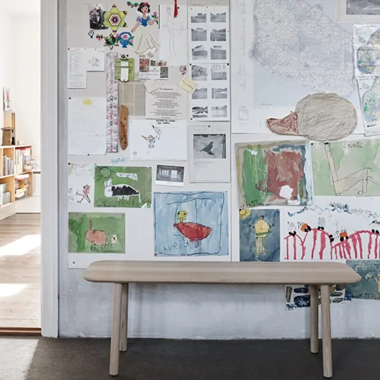 Skagerak’s Hven is a versatile wood bench that features an inviting, airy design due to its round legs and corners. Made of solid untreated oak sourced from sustainably manages forests, the bench is adorned with a beautiful natural grain pattern and measures 48.43 in (123 cm) x 14.17 x 0 in (36 x cm. cm).