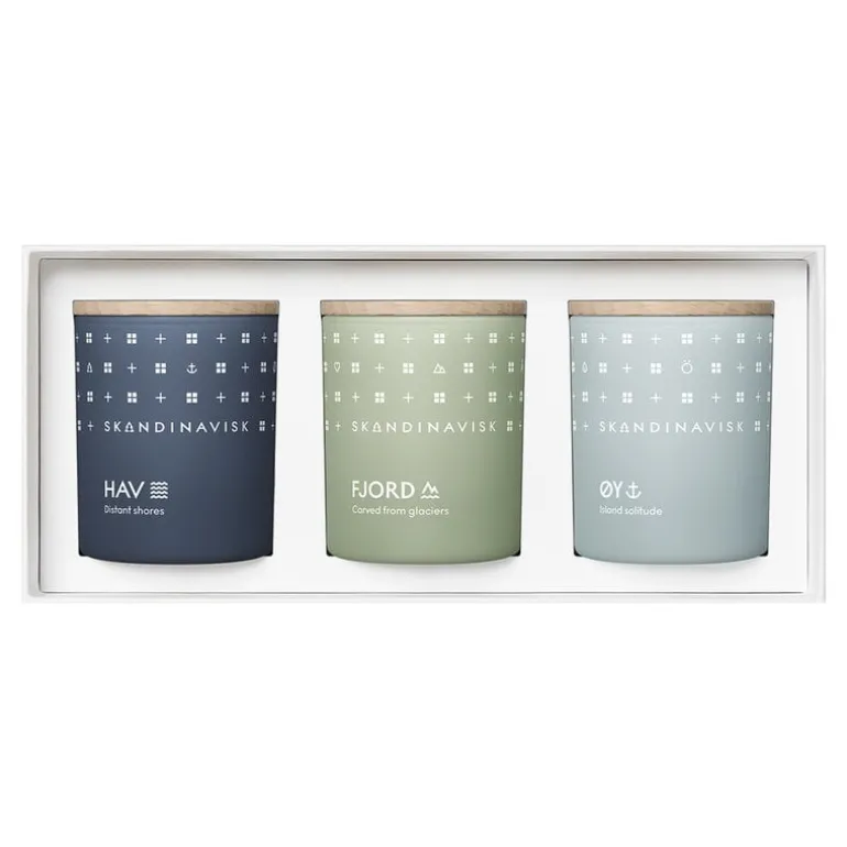 Scandinavisk’s Escape scented candle set includes three small scented candles, with scents that help you escape from everyday life into the atmosphere of Nordic nature. The Hav candle gives the salty scent of the sea, seaweed and hawthorn, while the Fjord candle brings you the scent of the forest, ripening fruit, blackcurrants, apple and pear blossom. The Øy scented candle is inspired by boat trips to desert islands: when you light the candle, you can smell the damp moss and the lush scents of wild roses and apple trees.