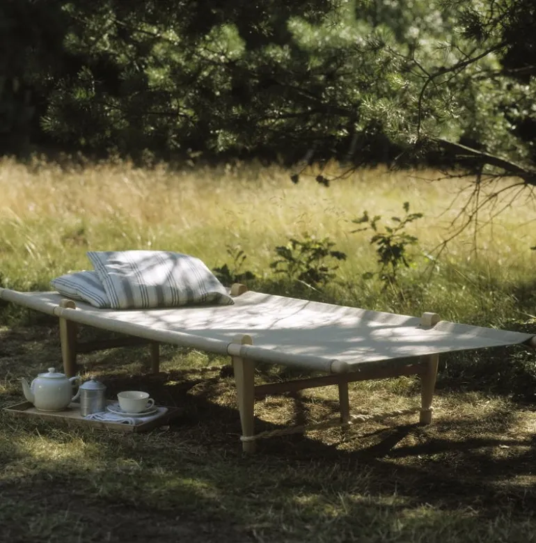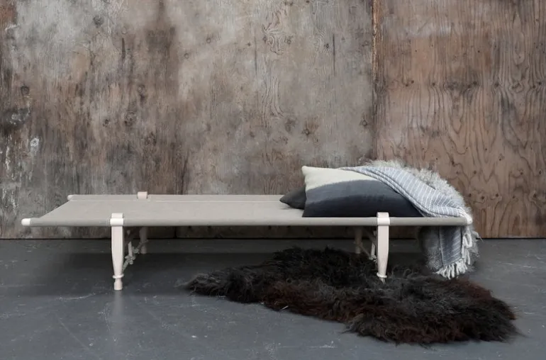 Skovshoved Møbelfabrik’s OGK daybed dates back to 1962 when Ole Gjerløv-Knudsen created a bed suitable for a camping trip so that his son with a cold wouldn’t have to sleep on the ground. The portable daybed comes in a linen bag with a convenient shoulder strap, and it’s fast and easy to assemble – no screws or tools are needed. The simple frame is made of beech and the cover is durable linen. The twisted sisal ropes are an essential part of the structure and double as a beautiful detail. The OGK daybed is a delightful classic, great as a guest bed and for lounging both indoors and outdoors.