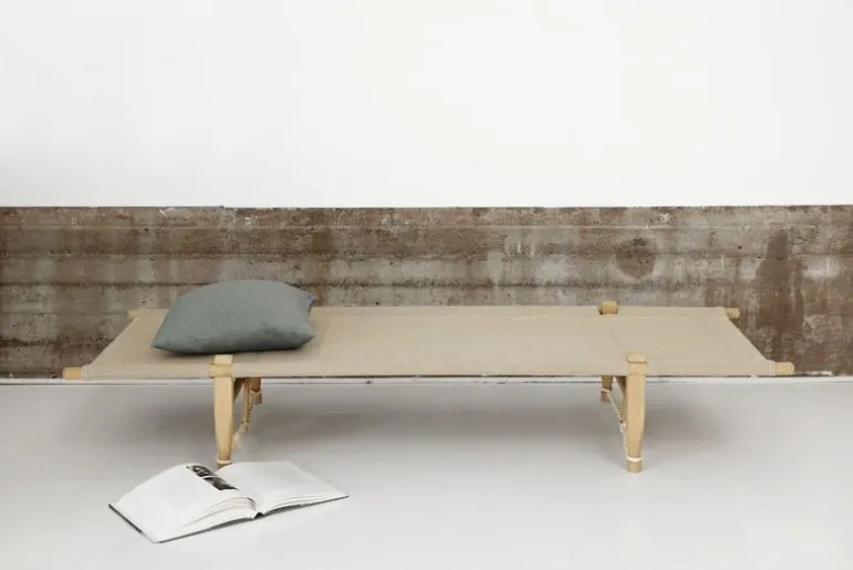 Skovshoved Møbelfabrik’s OGK daybed dates back to 1962 when Ole Gjerløv-Knudsen created a bed suitable for a camping trip so that his son with a cold wouldn’t have to sleep on the ground. The portable daybed comes in a linen bag with a convenient shoulder strap, and it’s fast and easy to assemble – no screws or tools are needed. The simple frame is made of oak and the cover is durable linen. The twisted sisal ropes are an essential part of the structure and double as a beautiful detail. The OGK daybed is a delightful classic, great as a guest bed and for lounging both indoors and outdoors.