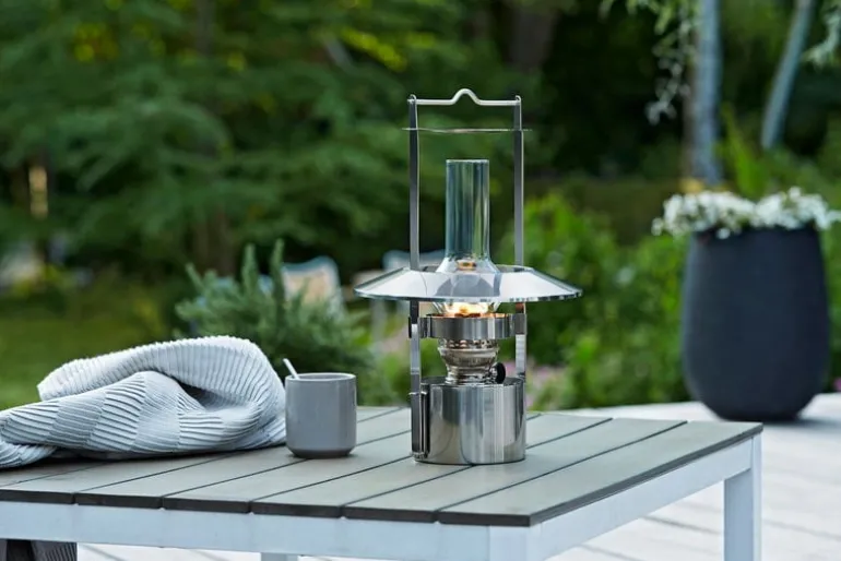 Stelton’s Ship’s lamp is Danish designer Erik Magnussen’s contemporary interpretation of the classic nautical lantern. Designed in 1982, the oil lamp has become a design icon due to its modern, minimalist esthetic and multifunctionality: the lantern is suitable not only for a maritime setting but also for illuminating the garden, terrace or patio both as a table lamp or hanging lamp. The Stelton Ship’s lamp is operated with lamp oil.