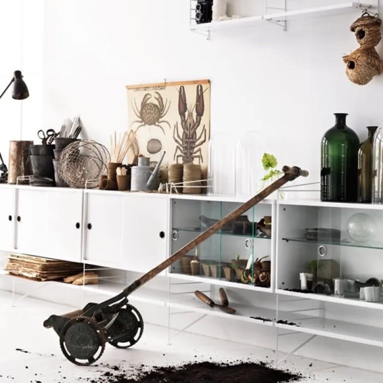String System is an iconic modular shelving system that was originally designed by Swedish architect Nils Strinning back in 1949. The signature ladder-like side panels can be combined with different shelves, magazine racks, work desks, folding tables, chests and cabinets, allowing you to create a customized system that best suits your needs. The timeless and minimalist design of the String System makes it an ideal choice for modern homes and offices, and the versatile shelving system can be endlessly expanded both vertically and horizontally. String Furniture remains dedicated to designing and manufacturing its products in Sweden.