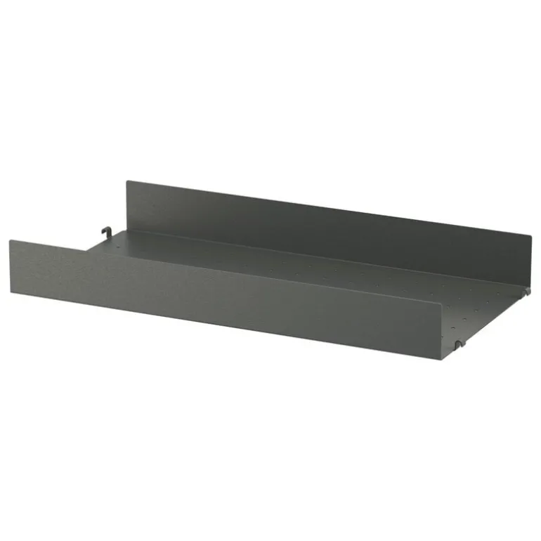The high String metal shelf is designed to fit String panels measuring 11.81 in (30 cm) in width. Upgrade the shelf with String System’s clever hooks or metal rods for extra hanging storage.