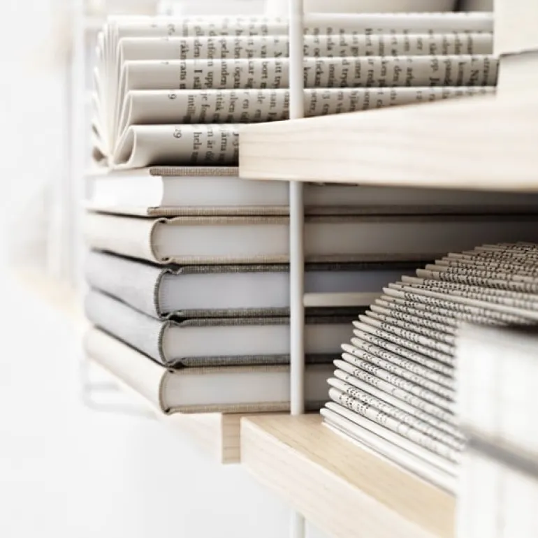 String Pocket is a compact and elegant shelf for books, collectables and other small items. Launched in 2005 by the Swedish manufacturer String, String Pocket is part of the popular collection designed by Nils Strinning in 1949. The minimalist design consists of three shelves and two ladder-like side panels that can also be combined into larger units both vertically and horizontally. String Pocket is available in an array of colors and suitable for multiple uses and spaces.