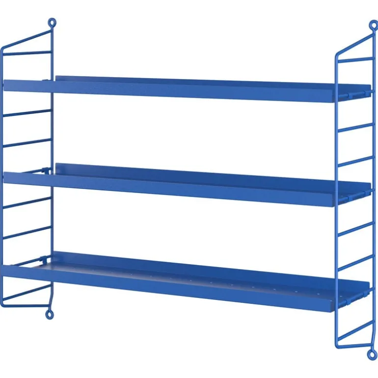 String Pocket is a compact and elegant shelf for books, collectables and other small items. Launched in 2005 by the Swedish manufacturer String, String Pocket is part of the popular collection designed by Nils Strinning in 1949. The minimalist design consists of three shelves and two ladder-like side panels that can also be combined into larger units both vertically and horizontally. String Pocket is available in an array of colors and suitable for multiple uses and spaces.
