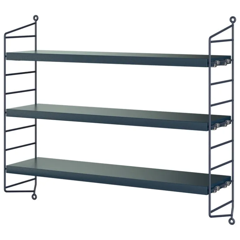 String Pocket is a compact and elegant shelf for books, collectables and other small items. Launched in 2005 by the Swedish manufacturer String, String Pocket is part of the popular collection designed by Nils Strinning in 1949. The minimalist design consists of three shelves and two ladder-like side panels that can also be combined into larger units both vertically and horizontally. String Pocket is available in an array of colors and suitable for multiple uses and spaces.