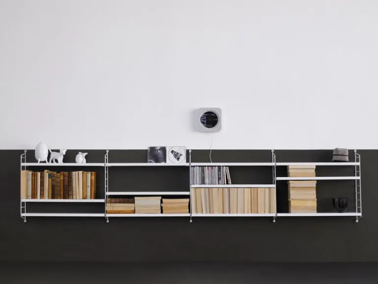 String Pocket is a compact and elegant shelf for books, collectables and other small items. Launched in 2005 by the Swedish manufacturer String, String Pocket is part of the popular collection designed by Nils Strinning in 1949. The minimalist design consists of three shelves and two ladder-like side panels that can also be combined into larger units both vertically and horizontally. String Pocket is available in an array of colors and suitable for multiple uses and spaces.
