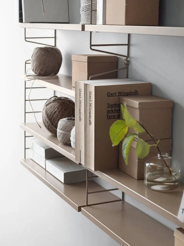 String panels form the basis for the entire String shelving system. String side panels are mounted on the wall using screws, and they can be combined with the shelves and other elements of String System in numerous different ways.