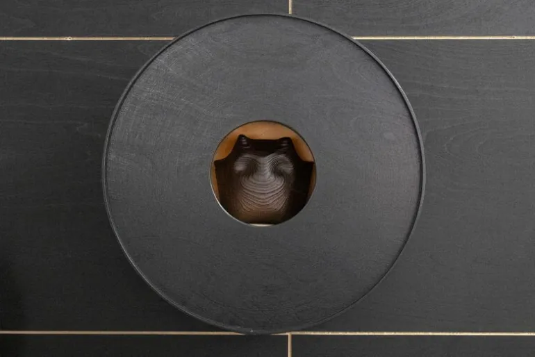 Designed by Tapio Anttila, this wooden figurine is part of Tapio’s Creatures collection, drawing inspiration from the spirits and gnomes of Finnish mythology. Each figurine, featuring a softly minimal, mysterious expression, is hand-carved in Finland from leftover pine wood and finished by burning and varnishing the surface, highlighting its natural grain. Every piece is unique, with individual cracks and subtle color variations, and each includes a base plate with the character’s and designer’s names.