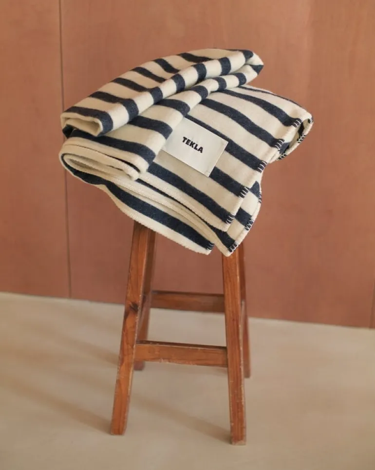 Tekla’s lambswool blanket is perfect for keeping cozy on chilly winter days while adding a touch of warmth and elegance to your home décor. Finished with decorative stitching and the signature Tekla logo, the blanket is made from a blend of virgin and recycled lambswool, combining exceptional softness with easy-care practicality. Naturally resistant to dirt, odors and wrinkles, the wool blanket requires minimal care, making it as functional as it is stylish.