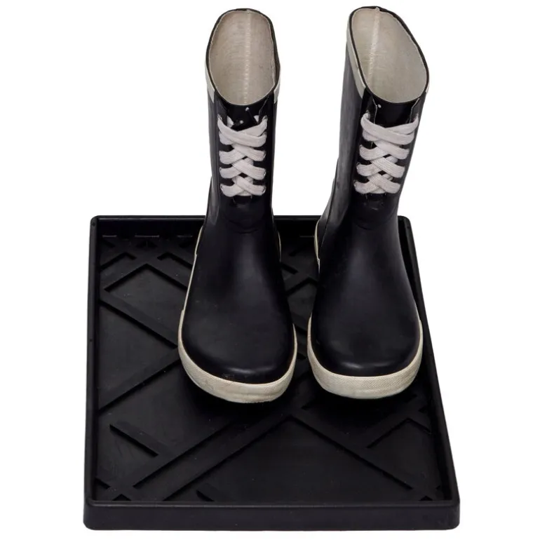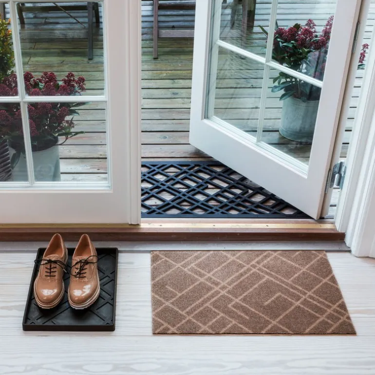 Made of dense rubber the Lines shoe mat stays firmly in place on all types of surfaces and is easy to clean by vacuuming or rinsing.