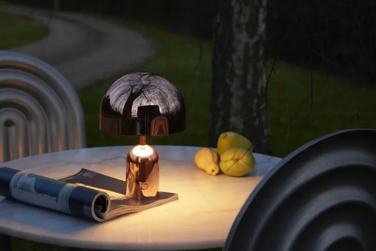The portable Bell table lamp is equipped with a glare-free diffuser and touch dimmer, allowing you to adjust the light intensity according to your needs and mood. The cordless and dimmable design makes the lamp equally suitable as a reading light on your desk or next to an armchair, as well as a bedside light or portable dining table light. The USB-rechargeable lamp offers up to 9 hours of continuous light on a single charge.