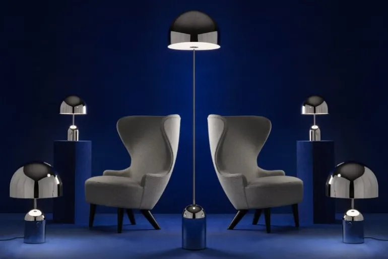 Tom Dixon’s Bell table lamp is characterized by the striking fusion of bold geometric lines and understated simplicity. This eye-catching table lamp comprises a bold, cylindrical shade and base, both treated with an extra glossy finish that playfully reflects the shapes and lights of the surroundings.