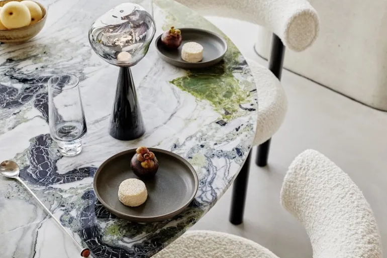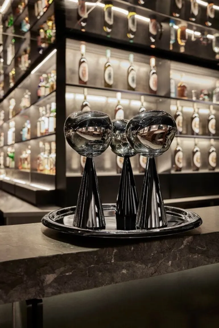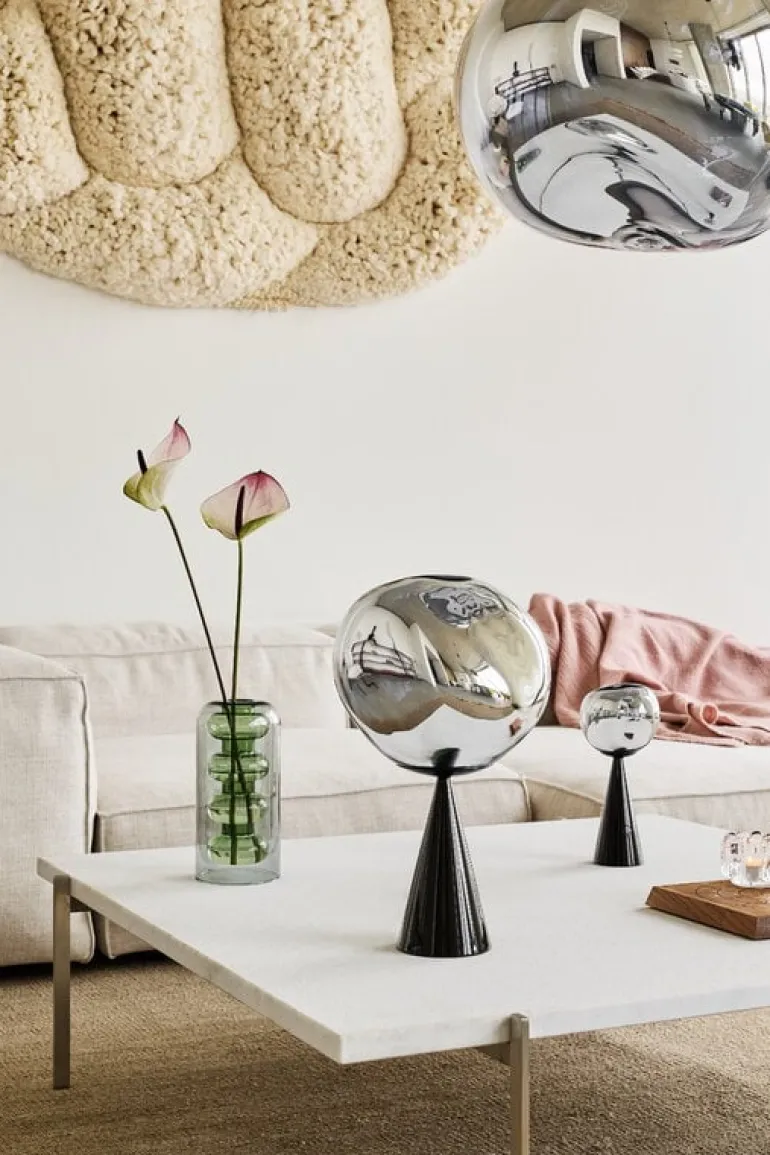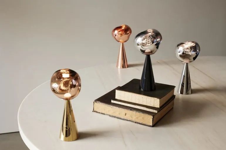 Tom Dixon’s intriguing Melt table lamp was designed in collaboration with the Swedish design collective Front. When turned off, Melt has a lustrous mirror finish, and the uneven surface reflects light in the most exciting way. Only when turned on or in full daylight the luminaire turns translucent and creates an illusion of hot melting glass.
