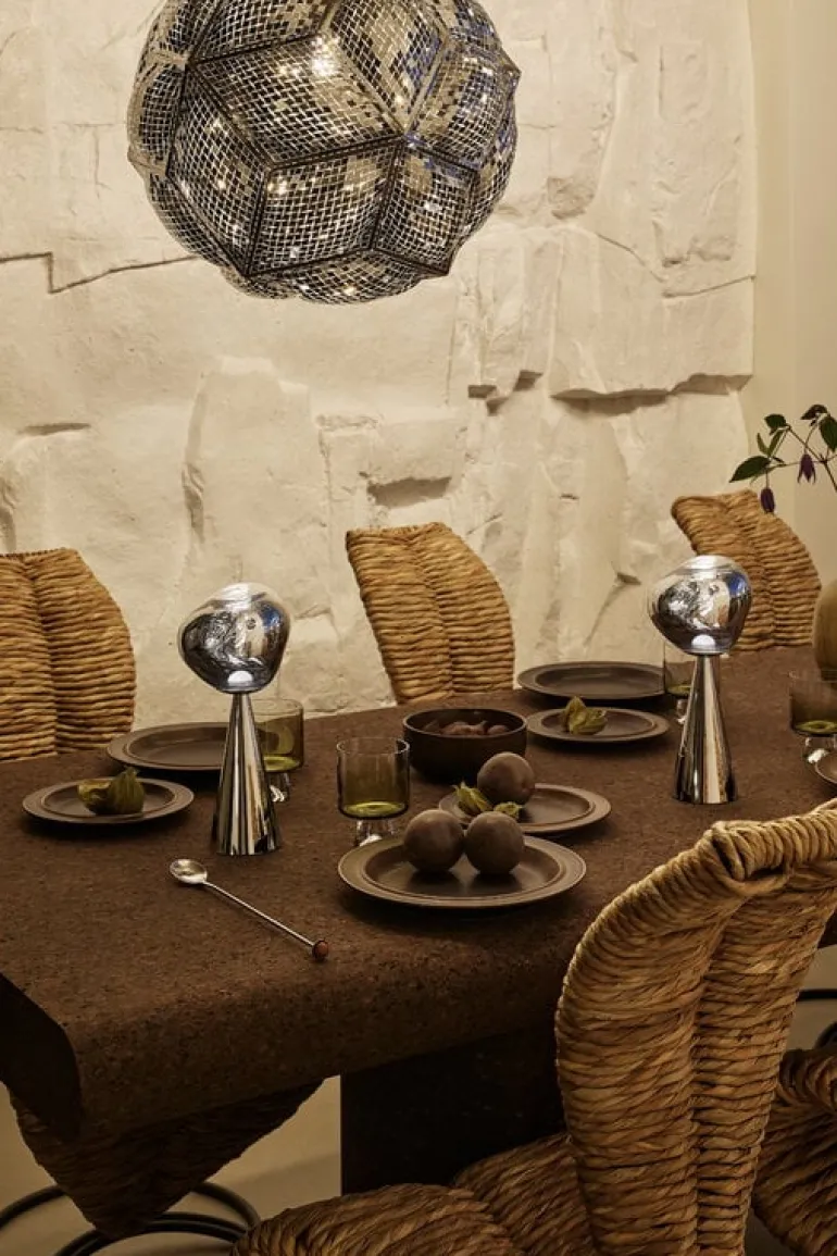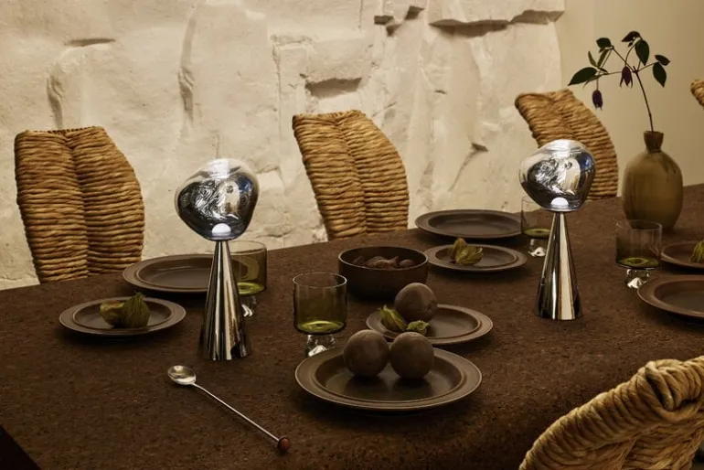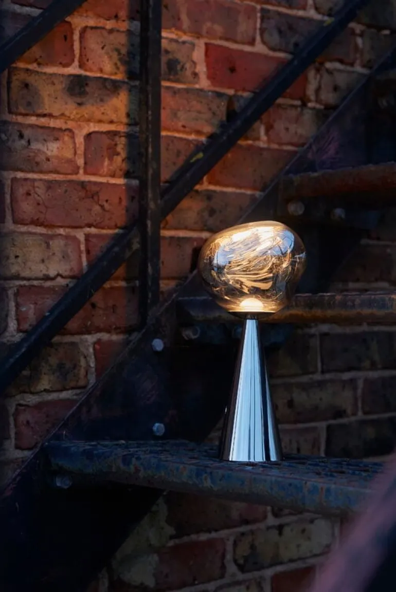 Tom Dixon’s intriguing Melt table lamp was designed in collaboration with the Swedish design collective Front. When turned off, Melt has a lustrous mirror finish, and the uneven surface reflects light in the most exciting way. Only when turned on or in full daylight the luminaire turns translucent and creates an illusion of hot melting glass.
