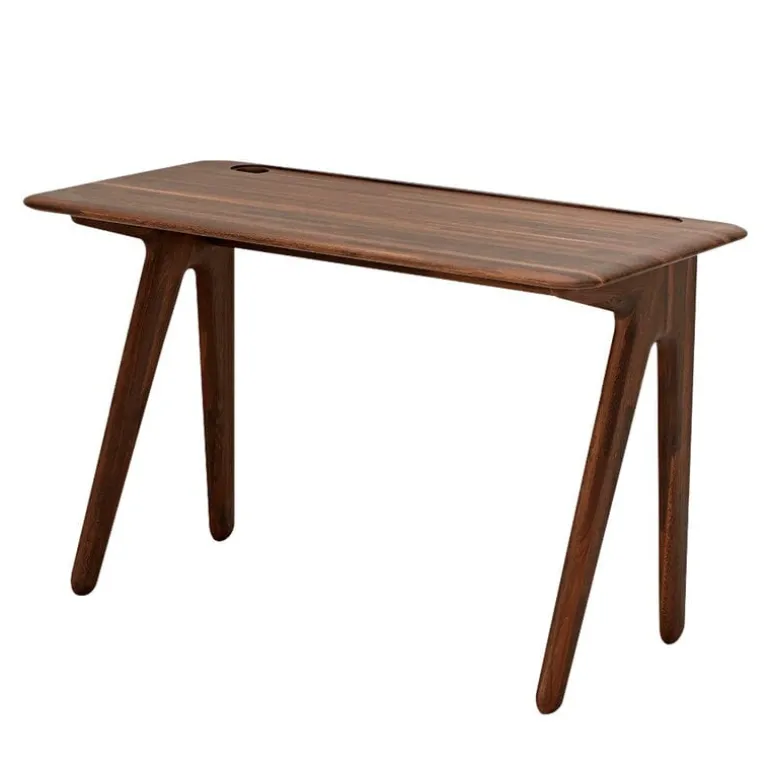 Tom Dixon’s Slab desk borrows its design language from Victorian school desks. The strong look of the Slab desk is softened by the rounded corners of the tabletop and the attractive, sloping position of the legs. The oak table features a traditional inkwell, updated for the modern age: instead of ink pens, it hides messy wires and cables. There is also a pen slot on the tabletop where writing instruments can be stored.