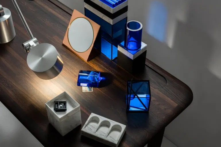 The multi-purpose Slab is ideal as a desk in a home office, a make-up table in the bedroom or a charming side table in the living room, where you can sit down to read or just to check your phone. This stylish table also finds a place in public spaces, such as hotel rooms or library reading rooms.