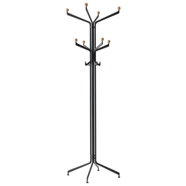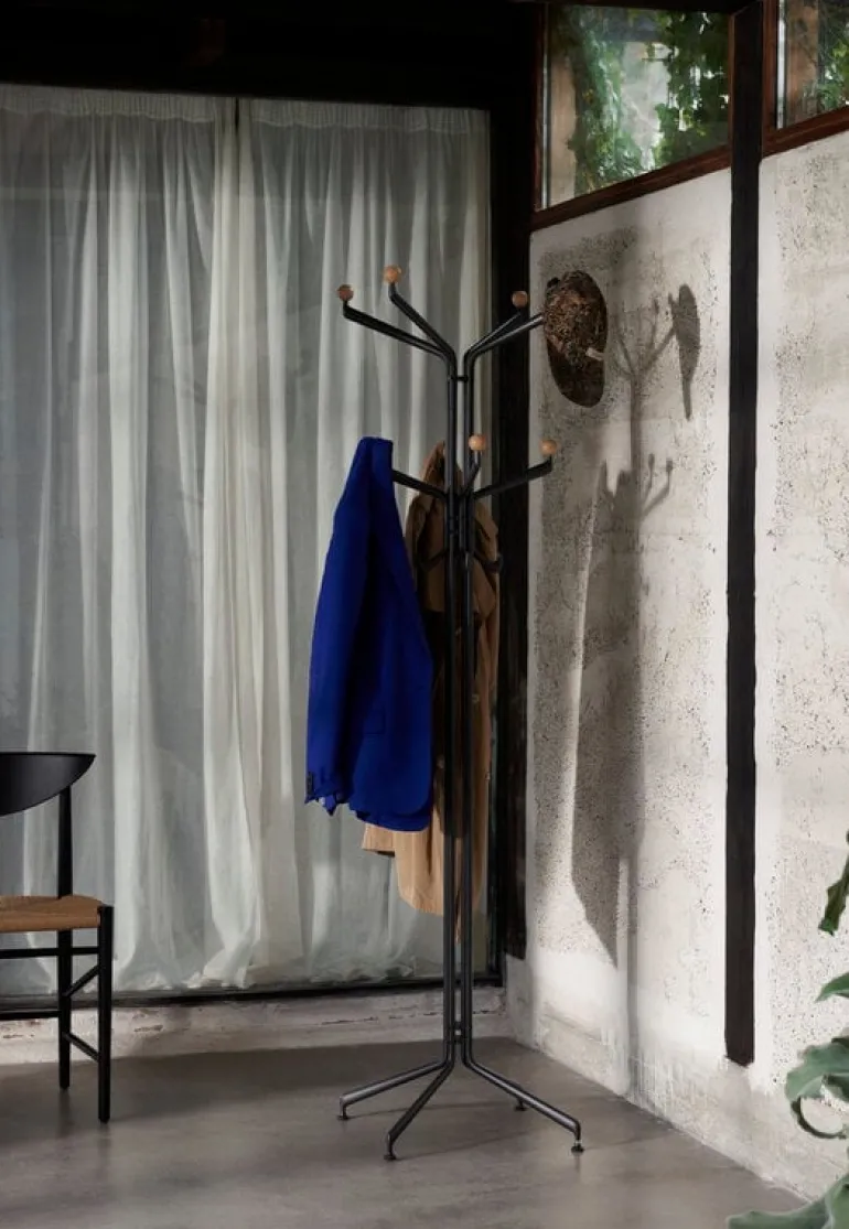&Tradition’s Capture SC77 coat stand, designed by Space Copenhagen, is a freestanding coat rack, ideal for hallway use at homes, offices and public spaces alike. The metal parts of the Capture coat stand are made of powder-coated aluminum, and the round knobs are crafted from solid wood. The clean lines and robust construction arms make the Capture coat stand a versatile and timeless storage solution for any space.