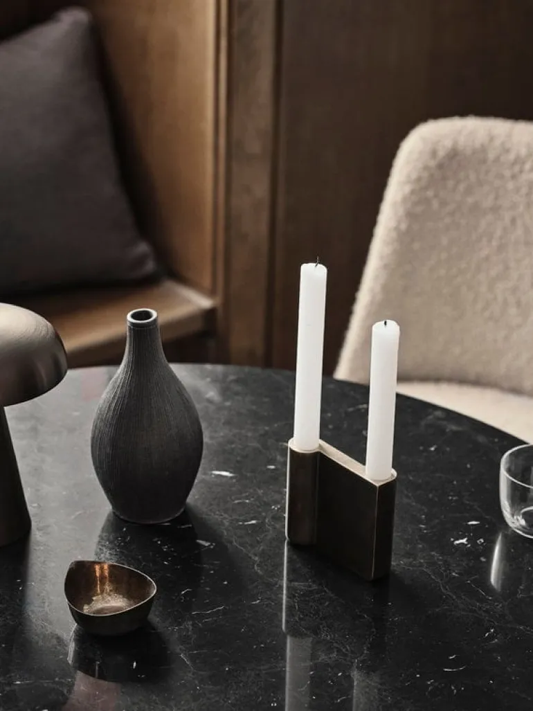 &Tradition’s Collect candleholder provides a sculptural and stylish setting for two taper candles. The candleholder is made from cast brass with a bronzed finish, and its top has been polished to create a shiny brass surface that will gain a beautiful patina over time.