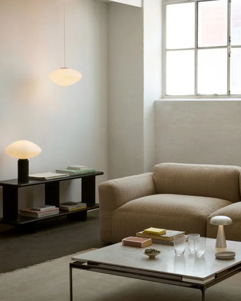 &Tradition’s Develius Mellow modular sofa brings invitingly soft shapes to the Develius sofa collection by Edward van Vliet. While retaining the flexible modular design of the original range, Develius Mellow features upgraded, softer cushions with removable covers. This two-seater modular sofa is upholstered in Dedar’s richly textured Karakorum bouclé fabric, giving the sofa a wooly, curly finish.