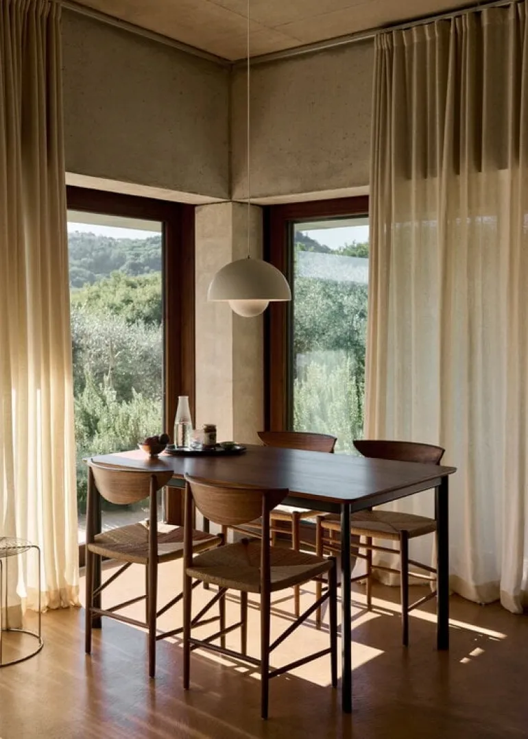 The Drip HW115 dining table by &Tradition captivates with its timeless design, high-quality materials and exceptional versatility. Designed by Hee Welling, the long and narrow dining table strikes a delicate balance between lightness and strength, thanks to the combination of a sleek solid wood tabletop and slender steel legs.