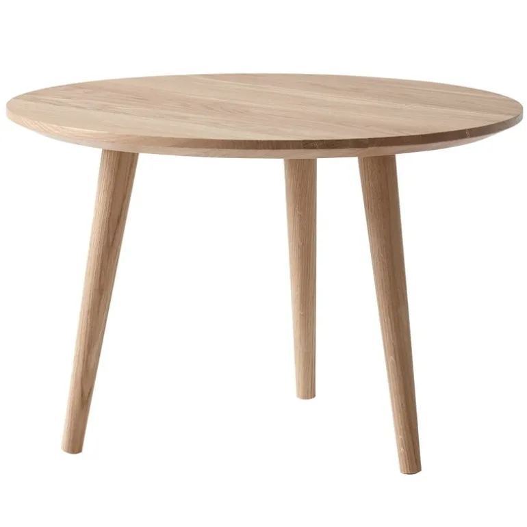 &Tradition’s In Between lounge table is an elegant addition to the wooden furniture collection designed by Sami Kallio. The round In Between SK14 table repeats the curved shapes and sloping legs of the In Between chairs. A result of designer Kallio’s love for Scandinavian heritage and woodworking, the In Between table is made of strong and characterful oak wood with traditional techniques such as woodturning. The light, three-legged design and detachable legs give the table a modern finish and allow it to be transported and stored flat-pack.