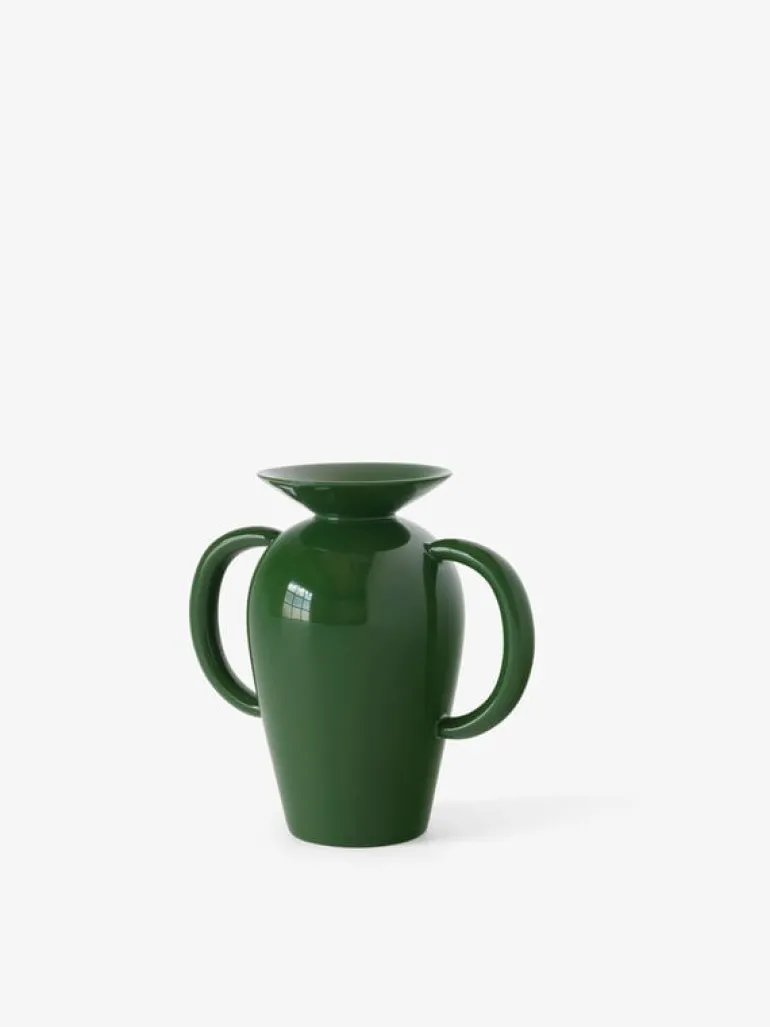 The Momento vase by &Tradition, with its artistic contours and striking silhouette, is almost instantly recognizable as the work of Spanish artist and designer Jaime Hayón. The whimsical vase has a distinctly graphic character, but it is softened by the emerald green color inspired by the fresh and lively shades found in nature’s blooms.