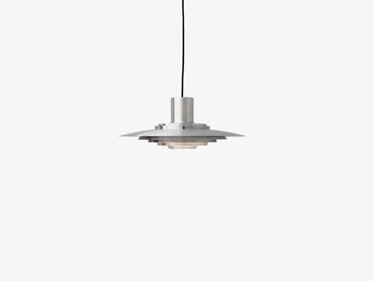 P376 KF1 pendant perfectly embodies the esthetics of Danish modernism. P376 KF1 is crafted from five concentric shades that curve towards the middle to create a soft, diffused light. Due to its architectural, symmetrical silhouette, the P376 KF1 pendant fits perfectly above the dining table or as an eye-catching luminaire in the living room. The pendant was originally designed in 1963 by architects Jørgen Kastholm and Preben Juhl Fabricius.
