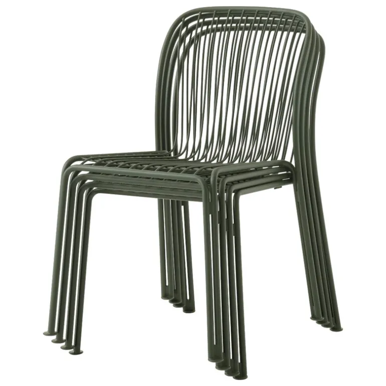 &Tradition’s Thorvald SC94 is an outdoor dining chair featuring a steel frame and stackable design, with vertical lines of its backrest and grid-like seat lending it a sleek, airy profile. The Thorvald SC94 patio side chairs blend seamlessly with dining tables from the same collection and also pair beautifully with other styles of outdoor furniture, making them a versatile addition to any al fresco dining area.