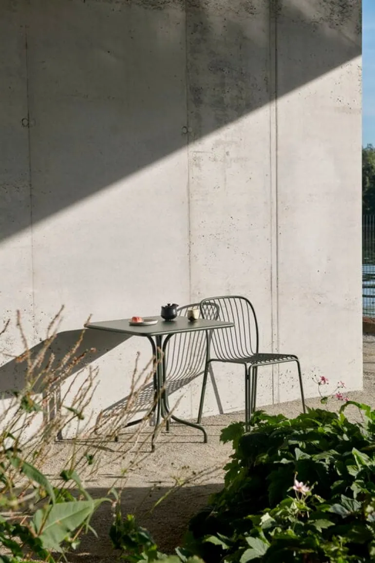 Designed by Space Copenhagen, the Thorvald collection offers a diverse suite of metal patio furniture, echoing the vibrant essence of Copenhagen and playing with sunlight to cast intriguing shadows on the ground. Inspired by the poetic lines of Denmark’s renowned neoclassical sculptor, Bertel Thorvaldsen, and the intricate motifs in his namesake museum, the Thorvald series is designed to animate any outdoor space, from chic urban terraces and snug balconies to spacious summer retreats, in both private and public settings.