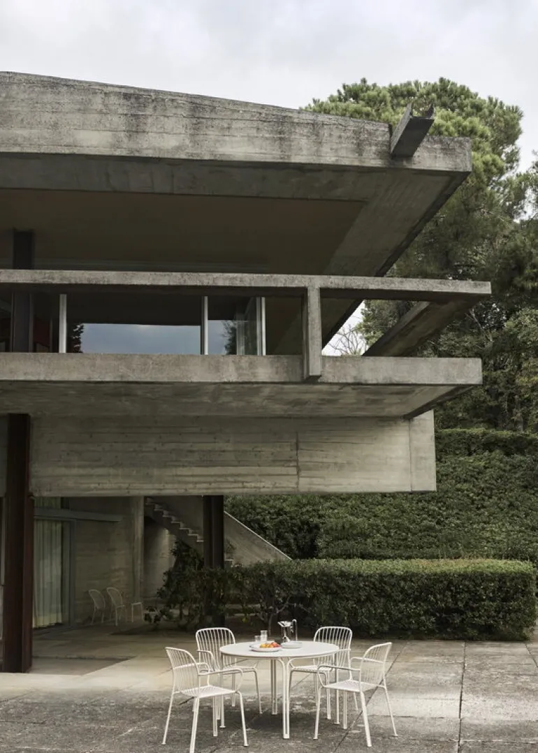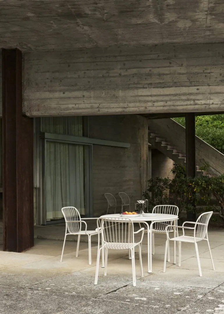 Designed by Space Copenhagen, the Thorvald collection offers a diverse suite of metal patio furniture, echoing the vibrant essence of Copenhagen and playing with sunlight to cast intriguing shadows on the ground. Inspired by the poetic lines of Denmark’s renowned neoclassical sculptor, Bertel Thorvaldsen, and the intricate motifs in his namesake museum, the Thorvald series is designed to animate any outdoor space, from chic urban terraces and snug balconies to spacious summer retreats, in both private and public settings.